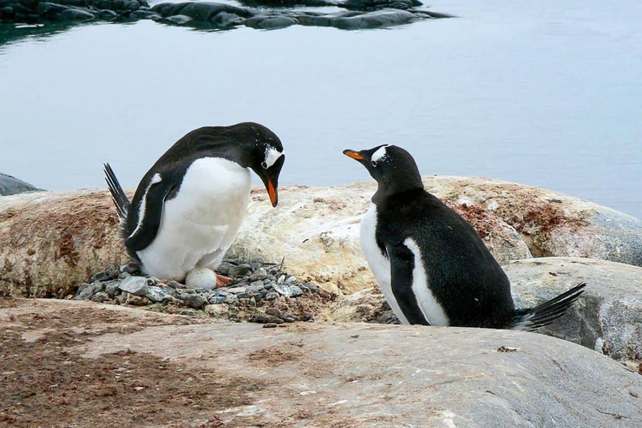 Las piedras de amor que el pingüino macho ofrece a la hembra terminan siendo parte del nido