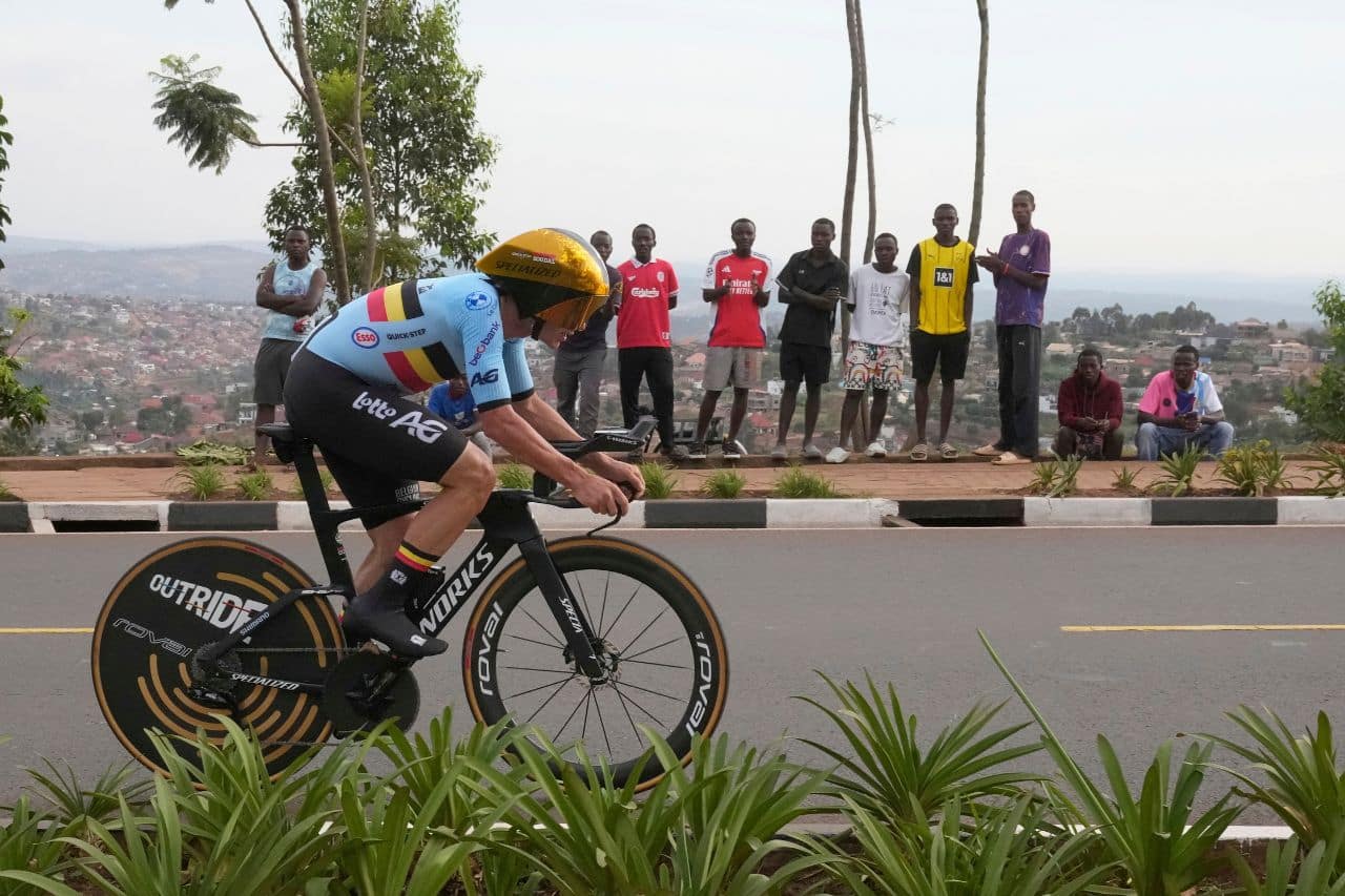 En una contrarreloj de 40,6 km disputada en Kigali, Evenepoel cruzó la meta con un tiempo de 49:46,03, superando con amplitud a sus rivales inmediatos.